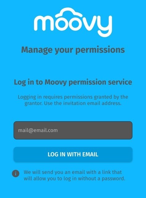 - Open the Moovy Lupa app and enter your email address in the designated field. Click the Log in with email button.